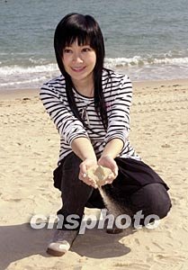 歌星關心妍11月26日在香港赤柱正灘為無線電視拍攝音樂劇《愛在富豪海灣的日子》外景,關心妍閑來在沙灘弄沙,浪漫一番。作者:鄧慶樂