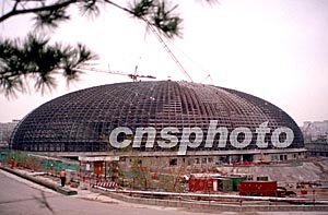 圖:國家大劇院“蛋形”輪廓初步顯現 (2003-10-20 10:44:48)