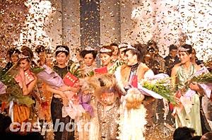 十一月二十六日晚,2003中國國際時(shí)裝周頒獎(jiǎng)典禮在北京中國大飯店舉行,最佳職業(yè)時(shí)裝模特、最佳造型師、中國時(shí)裝設(shè)計(jì)“金頂獎(jiǎng)”等眾多獎(jiǎng)項(xiàng)各歸其主,為期一周的時(shí)裝盛會(huì)在歡笑中閉幕。中新社記者:盛佳鵬