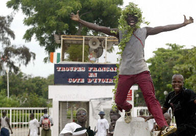 當地時間12月1日,大約400名科特迪瓦青年在阿比讓南郊法國海軍陸戰隊基地門前舉行示威,要求法國部隊撤離科特迪瓦。法軍動用裝甲車和催淚彈驅散了示威者。
