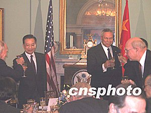 會見后,溫家寶出席了鮑威爾舉行的歡迎宴會。李肇星等中方陪同人員和美國財政部長斯諾、總統國家安全事務助理賴斯等出席。完