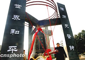 圖:"和平大鐘"落戶南京大屠殺遇難同胞紀念館 (2003-12-11 21:05:07)
