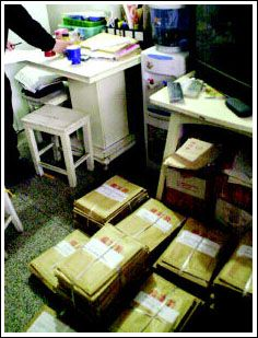 知情學(xué)生家長(zhǎng)反映,周日他們將組織一次大規(guī)模數(shù)學(xué)考試,西安市教育局局長(zhǎng)李尚儉聞?dòng)崳概删只殛?duì)前往查處。昨日稽查隊(duì)一行4人來(lái)到尤廉家中,看到地上堆滿密封好的整袋整袋試卷,各考點(diǎn)的人陸續(xù)前來(lái)領(lǐng)取考卷。面對(duì)稽查人員的詢問(wèn),尤廉和楊益新說(shuō),他們這次考試未向任何部門(mén)申報(bào),幾年來(lái)一直是這樣做的。這次每個(gè)考生收取報(bào)名費(fèi)8元,若要他們編寫(xiě)的“祖沖之杯”數(shù)學(xué)邀請(qǐng)賽資料,再加收2元。這次報(bào)名考生共有9000多人。當(dāng)聞?dòng)嵹s來(lái)的長(zhǎng)延堡派出所副所長(zhǎng)朱小青追問(wèn)印章來(lái)由時(shí),楊益新承認(rèn)印章是私刻的。民警后來(lái)在房間電腦中發(fā)現(xiàn)這次考生實(shí)際人數(shù)竟達(dá)14919人。考點(diǎn)分別設(shè)在陜師大附中、高新一小、鐵一中等十幾所學(xué)校。記者在現(xiàn)場(chǎng)還發(fā)現(xiàn),他們印制的“2004年全國(guó)小學(xué)數(shù)學(xué)奧林匹克參賽辦法”已出爐,其中對(duì)收費(fèi)辦法、售賣材料及學(xué)生聯(lián)系辦法都有詳細(xì)要求。稽查人員隨后查扣了剩余試卷,并責(zé)令他們盡快通知各考點(diǎn)停考。但事情遠(yuǎn)沒(méi)有那么簡(jiǎn)單。