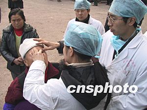 重慶市開縣高橋鎮的川東北氣礦一礦井天然氣“井噴”事故受到控制后,醫務人員繼續救治一受傷老人。作者:鄒輝
