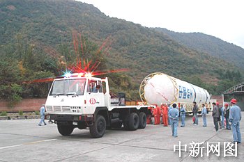 圖:“長征二號丙”改進(jìn)型運(yùn)載火箭轉(zhuǎn)運(yùn)途中