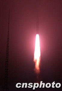 一連串短促清脆的指令發出后,金牌火箭“長征二號丙”改進型運載火箭噴射出桔紅色的熊熊烈焰,在驚天動地的呼嘯聲中沖天而起,托舉著“探測一號”衛星向九霄云外飛去。火箭越飛越高、越飛越遠,只一霎那功夫,就從人們的視線中消失了。