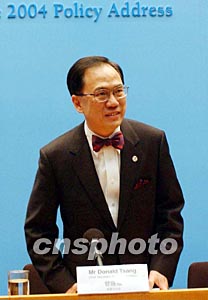 董建華發(fā)表施政報(bào)告承諾,將貼近民情改善施政 (2004-01-07 17:23:51)