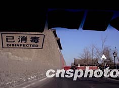一月上旬,一輛車窗上貼著“已消毒”標(biāo)志的出租車駛過北京故宮墻外。連日來,北京的出租車為預(yù)防SARS卷土重來,紛紛采取消毒措施,希望乘客放心乘坐。中新社記者:賈國榮