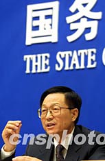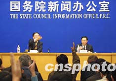 中國國家稅務總局局長謝旭人(右)回答記者提問表示:中國稅務總局將對東北老工業基地中的設備制造、石油、冶金、汽車、船舶、高新技術、農產品加工等八個行業進行增值稅轉型改革,以優惠的稅收政策支持產業發展。中新社記者:廖文靜