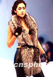 1月15日,在香港舉行的“香港國際時裝設計師表演”專場上,模特展示香港時裝設計師潘家郎的皮草服飾作品。作者:洪少葵