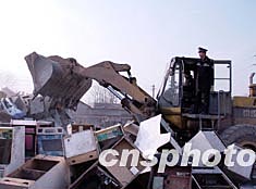 春節(jié)前夕,北京警方將收繳的4000余臺賭博機(jī)集中銷毀。作者:韓金星