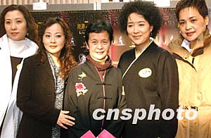 中國著名浙江小百花越劇團元月十五日在香港舉行新聞發布會,推出新版越劇《陸游與唐琬》,圖為劇中主要演員和導演在發布會上。作者:錢興強