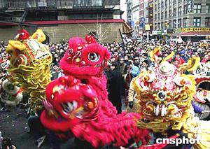 組圖:紐約華埠舞獅和燃放爆竹辭舊迎新