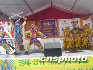 澳洲僑青社24日在悉尼中國(guó)城德信街舉行盛大的新春聯(lián)歡會(huì),數(shù)以萬(wàn)計(jì)的華人華僑和各界人士出席了開(kāi)幕儀式,并觀看了精彩的文藝節(jié)目。此次新春聯(lián)歡會(huì)一連兩日,由北京藝術(shù)團(tuán)、澳洲僑青社、悉尼西區(qū)華人協(xié)會(huì)以及黃河合唱團(tuán)的藝人獻(xiàn)演豐富多彩的歌舞和音樂(lè)節(jié)目,令悉尼各界人士耳目一新。中新社記者劉雨生攝