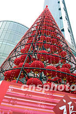 二十六日,一座由百余只大紅燈籠組成的巨型燈塔豎立在上海街頭,給節日里的申城增添了不少喜慶的色彩,吸引路人駐足觀望。作者:湯彥俊