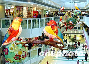 盡管禽流感襲擊亞洲諸多城市,但是香港一些商場(chǎng)依然用繽紛璀璨的禽鳥燈飾來裝飾即將來臨的元宵佳節(jié)。作者:潘索菲