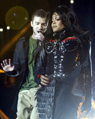 這次超級杯中場演出時,賈斯汀與珍妮-杰克遜合唱他的單曲《Rock Your Body》,臨近結尾時,他隨手扯下珍妮-杰克遜的上衣一塊布料,讓她在全球觀眾眼前公然裸露右胸,將所有新聞焦點從緊張的賽程上轉移到八卦話題。