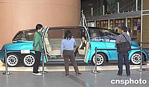 日本科學未來館日前展示一款由慶應大學環境情報學部專家新近開發的豪華型節能概念車。據介紹,這款以高性能低公害為標榜的新車種,采用多重高技術設計,與現行的普通燃油車相比能源費用消耗與排出二氧化碳量都能降低到三分之一以下。作者:王健