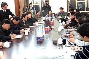 二月八日晚,北京市密云縣的領導就元宵節發生的特大踩擠事故舉行新聞媒體通氣會。中新社記者:盛佳鵬