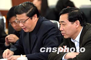 中共密云縣縣委書記夏強(右),縣長張文(左)在通氣會上向記者介紹事故發生當晚的情況、傷者救治情況以及死亡人員的善后處理情況。中新社記者:盛佳鵬