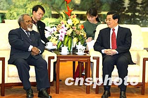 胡錦濤會見巴新總理 索馬雷表示奉行一中政策 (2003-10-19 18:11:20)