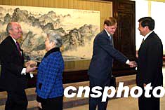 國務院副總理吳儀十二日在北京會見美國貿易代表佐利克。中新社記者:滿會喬