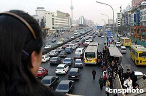 二月十六日上午,北京市區的西三環交通一片繁忙。北京市代市長王岐山當天在北京市十二屆人大第二次會議上做《政府工作報告》時提出,北京要加快交通設施建設速度,逐步緩解城市交通擁堵。中新社記者:滿會喬