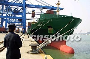 載重量近4萬噸的集裝箱船“科迪莉亞”號24日駛入象嶼碼頭,廈門港再添新環球航線。作者:鄭憲