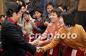 二月二十五日,由中國婦女雜志社主辦的2003年度海內外有影響力的《中國婦女》時代人物評選揭曉。全國人大常委會副委員長顧秀蓮(左),在北京人民大會堂接見各位時代人物。中新社記者:史利
