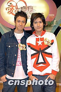 樂壇組合Boy'Z兩名成員關智斌(Kenny)、張致恒(Steven)(右起)3月2日出席香港電臺戲劇節目《愛在瘟疫蔓延時》啟播典禮。作者:鄧慶樂
