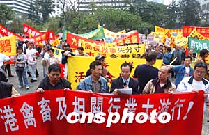 鑒于香港政府并沒有恢復(fù)輸入內(nèi)地活家禽的時(shí)間表,三月十日,香港活家禽批發(fā)商商會(huì)及相關(guān)行業(yè)舉行游行,要求政府盡快恢復(fù)從內(nèi)地輸入活雞。作者:潘索菲