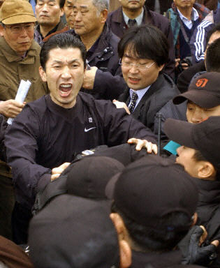 盧武鉉的一些支持者們之前在街頭游行,以示對盧武鉉的支持。