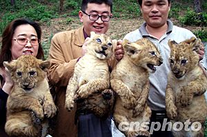 深圳野生動物園自二月二日成為禽流感疫區后,已有四十二天閉門謝客,僅天鵝湖的治理就用去近二百噸藥品。解除封鎖后,十四日首次允許新聞媒體入園采訪,十五日對外開園迎客。圖為動物園里剛滿月的四胞胎小獅子。作者:陳文