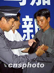 他介紹說自從公安部三月二日發布有關馬加爵的通緝令后,他始終留意這個信息。三月十五日晚七時左右他騎摩托車經過三亞河西岸,前往第一市場買菜。發現路邊有一男子在路邊垃圾桶翻撿別人丟棄的食物和飲料,他覺得此人相貌與通緝令上的照片非常想像,他立刻與到處都粘貼的通緝令對照,認為比較確定。在與馬犯對視的過程中,他還發現此人在裝瘋并且走路一瘸一拐。他立刻騎摩托前往三亞河西派出所報案。