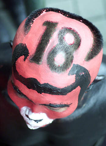 中新網3月17日電 印尼民主斗爭黨的一名支持者16日在東爪哇的該黨集會上展示自己的發型。由現總統梅加瓦蒂領導的印尼民主斗爭黨是該國最大的政黨。24個政黨將在4月5日爭奪550個議會席位。