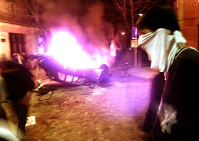 貝爾格萊德的一輛警車被焚
