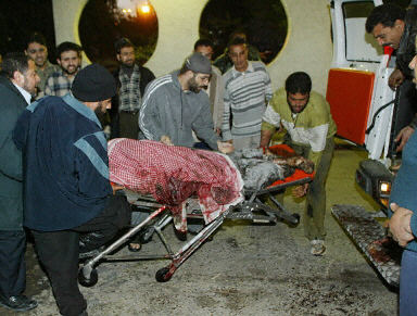 圖為哈馬斯精神領袖亞辛的尸體被送到加沙城的示法醫院。