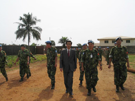歡迎儀式結束后,林大使在周紹瑞參謀長及中國維和部隊各分隊領導的陪同下,視察了我維和部隊營地,并看望了各級指戰員。