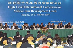 實現千年發展目標,將為人類在新千年的發展與進步奠定良好基礎。全球將有億萬人可以擺脫饑餓與貧窮,獲得安全水源和受教育的機會,更有數以億計的人可以免除疾病之虞,我們的孩子可以與自然和諧相處。我相信,只要我們拿出決心和勇氣,凝聚智慧與力量,將共識化為行動,調動各方資源,千年發展目標終將成為現實。