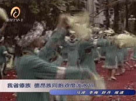 在德宏州府芒市,昨天一大早,長龍般的車隊和如潮的人流就把通往三臺山的道路堵塞得水泄不通,人們成群結隊爭先上山,采摘潑水節用的花枝。在山坡的空地上,伴著鏗鏘有力的象腳鼓聲,歡樂人群跳起了優美的孔雀舞。而一些年紀稍大的則對起了山歌,以此表達相互的祝福和對幸福生活的贊美。在佳節里,傣族、德昂族男女老少都要穿上節日的盛裝趕大“擺”,舉行浴佛和相互潑水祝福。白天城鄉各地處處水花飛舞,笑語連天,一片歡騰,晚上村村寨寨唱傣戲,嘎秧弄,放孔明燈,徹夜不眠。