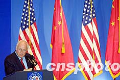 應邀來華訪問的美國副總統理查德切尼,四月十五日在上海復旦大學演講。作者:湯彥俊