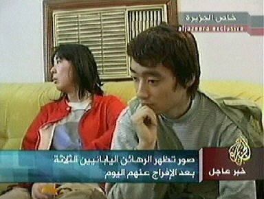 據報道,被釋放的3名人質,目前在伊拉克穆斯林長老會的保護下健康狀態良好。該電視臺播放了3名人質的圖像。被釋放的3名人質分別為自由撰稿人今井紀明(18歲,札幌市西區)攝影記者郡山總一郎(32歲,東京都杉并區)和志愿社會活動家高遠菜穗子(34歲、北海道千歲市)。