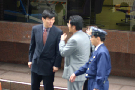 中國駐大阪總領館領事部負責人趙大維(左一)在現(xiàn)場與日本警方進行交涉。(《關西華文時報》叢中笑/春風攝影報道)