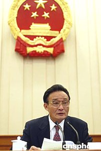 中新網4月25日電 十屆全國人大常委會第九次會議25日在北京舉行,吳邦國委員長出席并主持了上午的第一次全體會議。