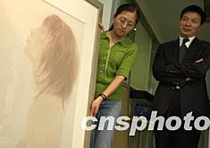 北京華辰拍賣(mài)有限公司董事長(zhǎng)兼總經(jīng)理甘學(xué)軍(右一),將在五月春季拍賣(mài)中推出一批中國(guó)當(dāng)代年青藝術(shù)家的精品,這批新生代的佳作與當(dāng)今世界藝術(shù)潮流齊頭并進(jìn),極具收藏欣賞和升值價(jià)值。中新社記者:賈國(guó)榮