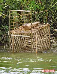小鱷魚在捕鱷籠頂享受日光浴。(資料圖片)
