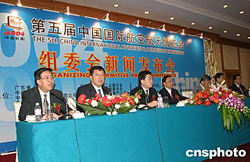 八月二十日,中國(guó)航展組委會(huì)在北京舉行的新聞發(fā)布會(huì)上宣布:第五屆中國(guó)國(guó)際航空航天博覽會(huì)將十一月一日在廣東省珠海市舉行。屆時(shí),還將舉辦“二零零四中國(guó)國(guó)際航空航天高峰論壇。中新社記者:史利