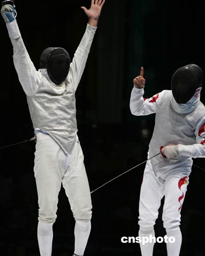 這也成為這場(chǎng)比賽的轉(zhuǎn)折點(diǎn)。此后中國(guó)選手一直被對(duì)手壓著打,比分差距越來(lái)越大,到董兆致最后一次出場(chǎng)時(shí),中國(guó)隊(duì)以三十四比四十落后對(duì)手六劍。絕境中的董兆致表現(xiàn)神勇,利用桑佐的求勝心切接連進(jìn)攻得手,竟把比分追成了四十二平。遺憾的是,他最終沒(méi)能完成大逆轉(zhuǎn),被桑佐連刺三劍而再度飲恨。