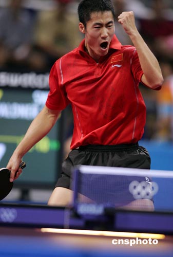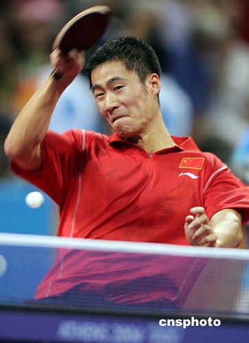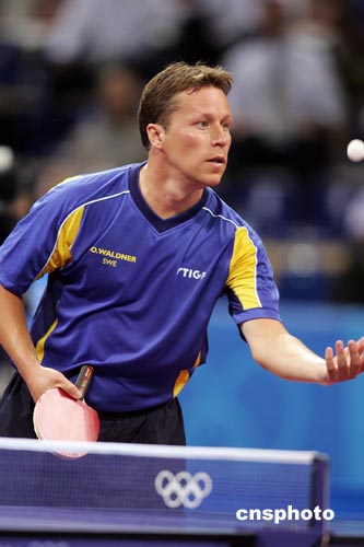 當(dāng)?shù)貢r間八月二十三日下午,在雅典奧運乒乓球男子單打決賽中,中國選手王勵勤戰(zhàn)勝瑞典老將瓦爾德內(nèi)爾獲得銅牌。中新社記者:毛建軍