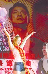 中新網8月25日電 據京華時報報道,令所有劉德華歌迷矚目已久的“劉德華歌迷形象代言人評選活動”終于在8月20日晚進行了決賽。經過采訪闡釋、現場采訪、才藝展示三個比賽項目的層層角逐,堪稱中國演出界的首位“歌迷形象代言人”終于揭開了她的神秘面紗,她就是在北京擔任編導工作的李沐怡。